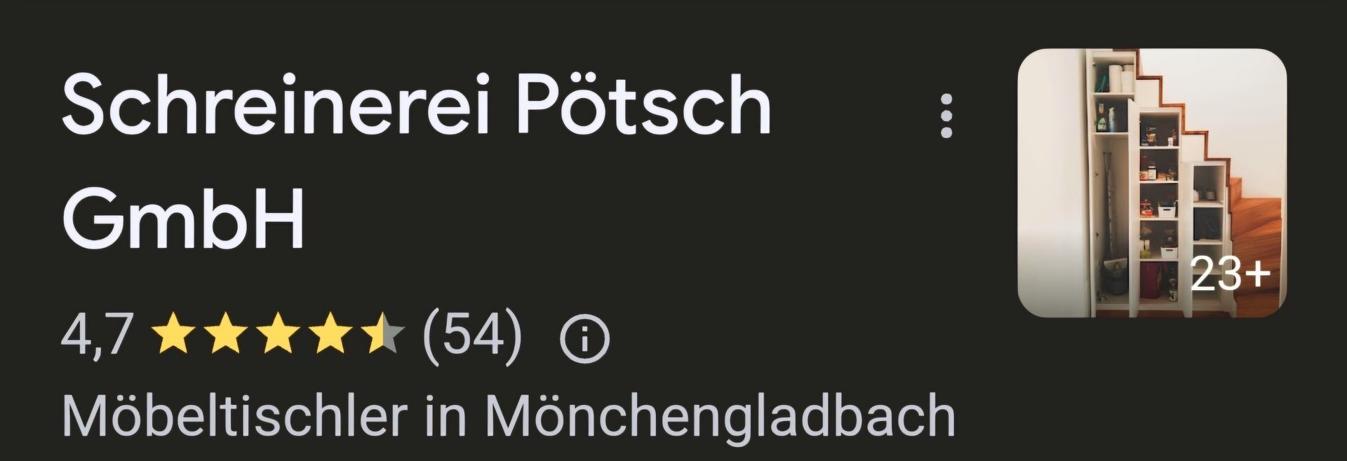Unsere Kunden bewerten uns bei Google positiv – das freut uns sehr.